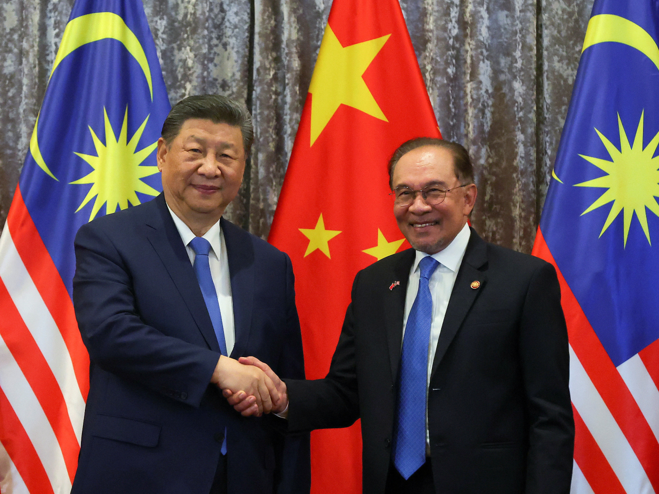 習近平較早時與安華會談,指出中方支持馬來西亞發揮東盟輪值主席國作用,願意與地區國家一同盡早簽署中國-東盟自貿區升級議定書,以開放包容、團結合作,抵制脫鉤斷鏈、小院高牆和濫徵關稅,以和平、合作、開放、包容的亞洲價值觀回應弱肉強食的叢林法則,以亞洲的穩定性和確定性應對世界的不穩定和不確定。