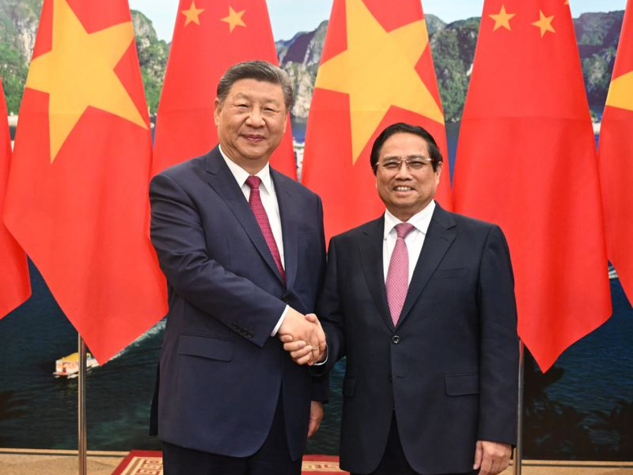 在越南國事訪問的國家主席習近平與越南總理范明政會面。習近平強調,雙方要加強戰略協作,共同反對霸權主義、單邊主義、保護主義,落實好全球發展倡議、全球安全倡議、全球文明倡議,共同捍衛國際公平正義,維護亞洲乃至世界和平穩定和發展繁榮。