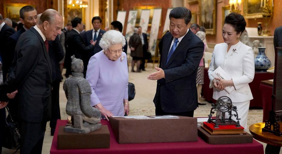 女王夫妇陪同来访的中国国家主席习近平