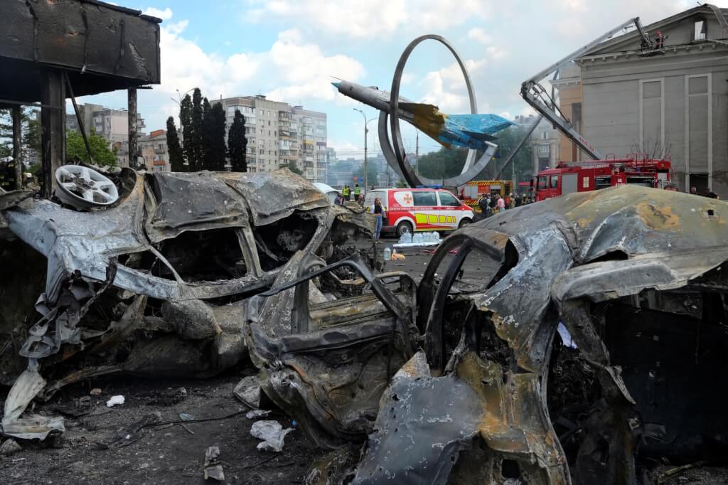 圖為俄羅斯在黑海潛艦14日發射一枚巡弋飛彈攻擊烏克蘭中部城市文尼察,造成至少20平民死亡。(美聯社)