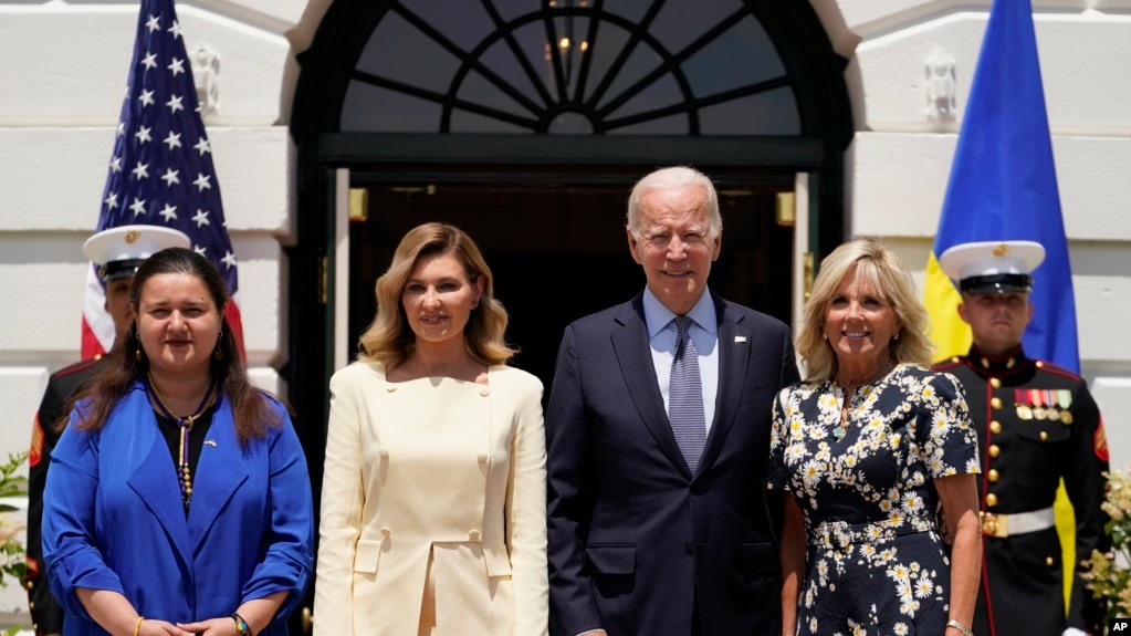 烏克蘭第一夫人澤連斯卡婭到訪華盛頓,獲美國總統拜登與第一夫人吉爾迎接。