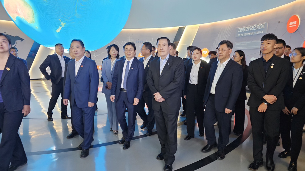 前總統馬英九一行,今天下午在國台辦副主任仇開明陪同下,前往隆基綠能公司參訪。(藍孝威攝)