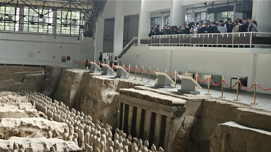 前總統馬英九一行,今天(6日)參觀秦始皇帝陵博物院兵馬俑博物館,由大陸國台辦副主任仇開明陪同,秦始皇帝陵博物院黨委書記、院長李崗參與解說。