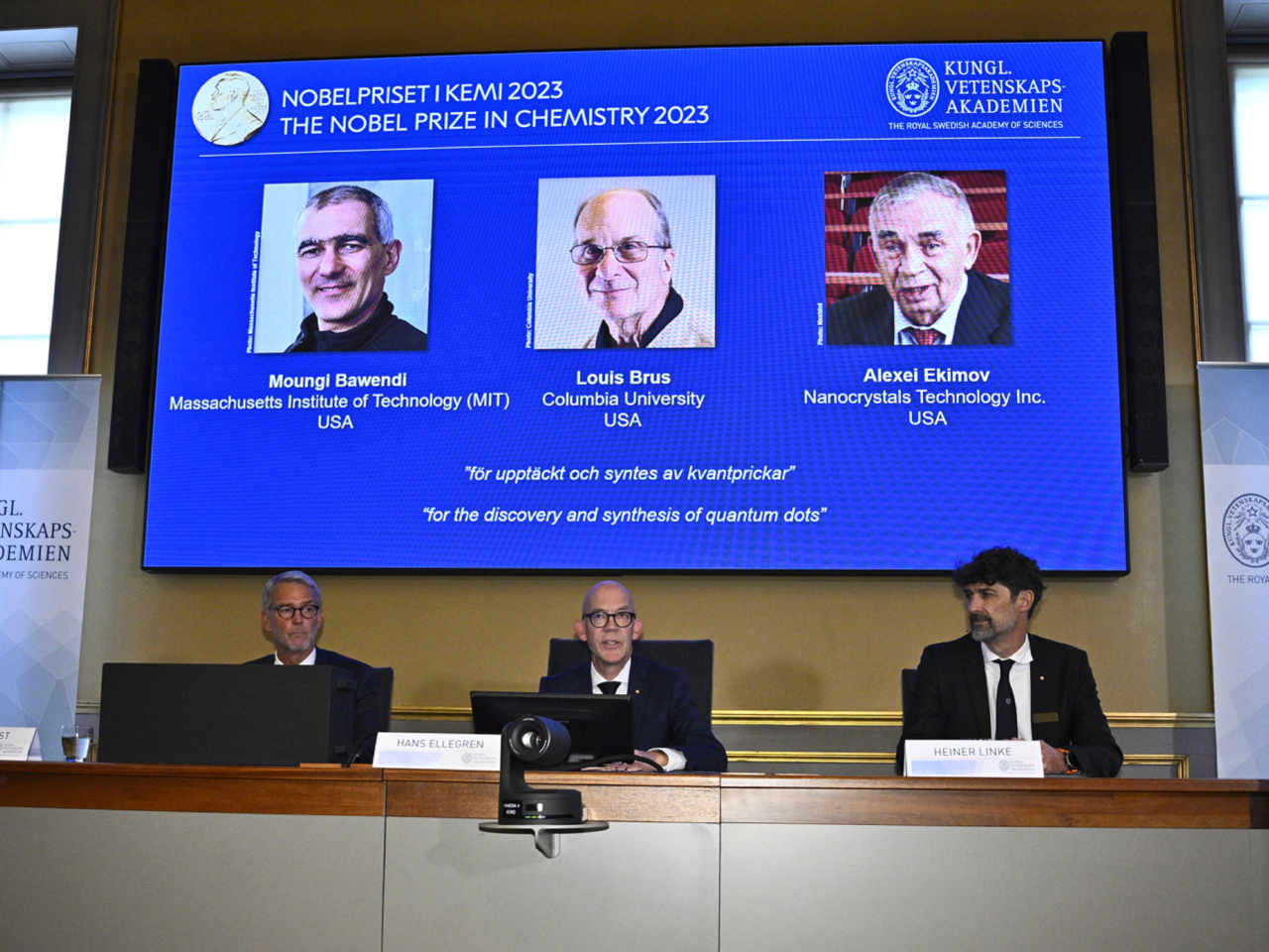 (中華新聞通訊社/中華時報10月5日訊)今年諾貝爾化學獎得主,分別是美國麻省理工學院化學教授巴文迪、美國哥倫比亞大學化學教授布魯斯,以及美國納米晶體技術公司前首席科學家葉基莫夫,以表揚他們在發現及合成量子點方面作出的貢獻,他們將分享折合超過780萬港元的獎金。