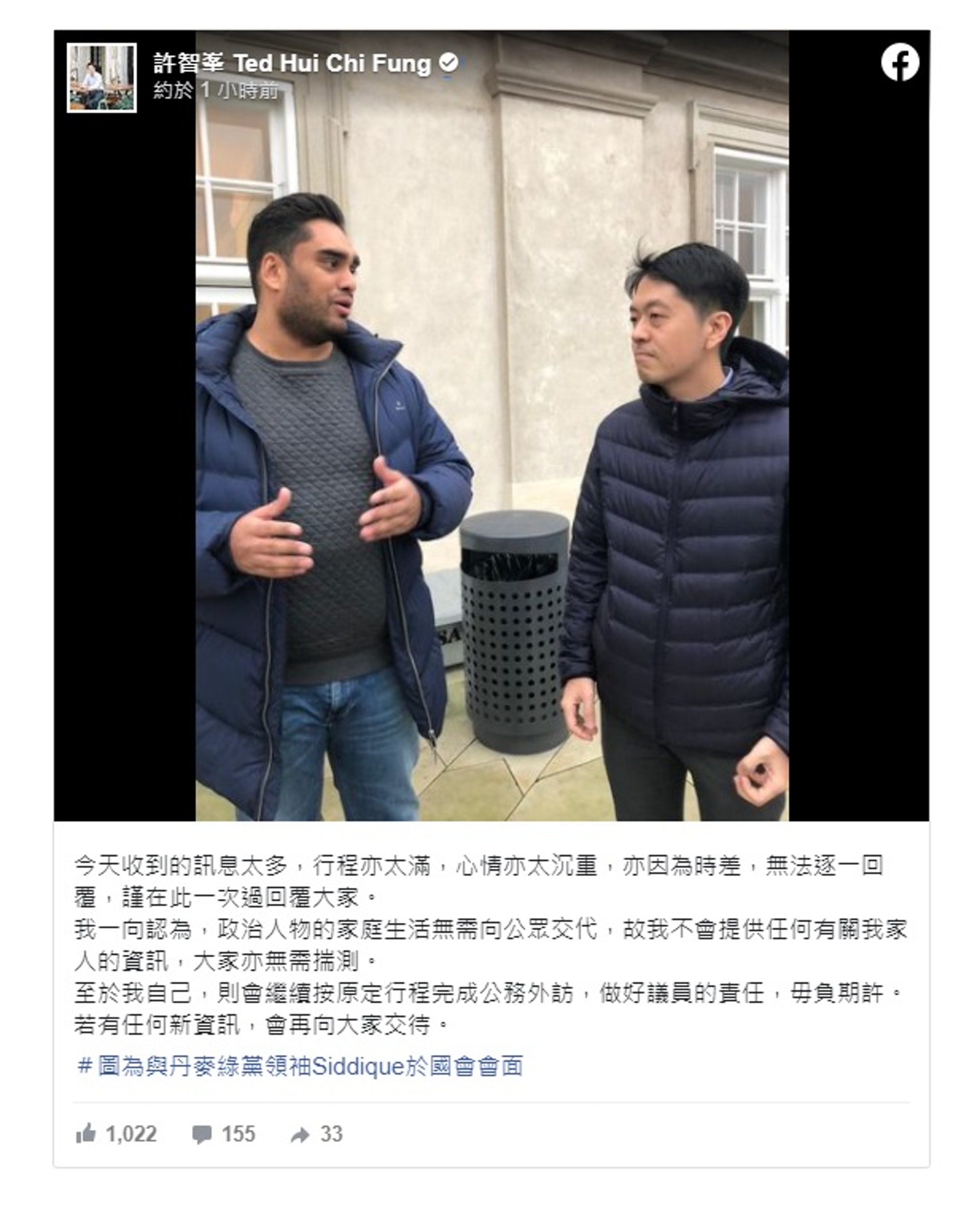 因为街头与议会抗争而有多项控罪在身、正在保释等候审讯的前立法会议员许智峰,周四(3日)透过面簿在丹麦宣布正式流亡。许智峰决定落脚英国。
