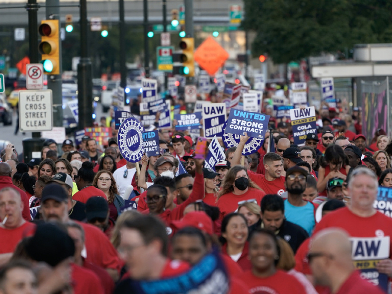 密歇根州參議員彼得斯安撫現場的工人說:「這次談判的一個重要部分是確保在我們轉型至電動汽車時,我們有工會工人在電池工廠和整個供應鏈中為製造這些電動汽車而工作,沒有理由他們需要分開。只要有工會工人參與製造,你就能建造世界一流的電動汽車,這也是培養世界一流的工人的方法。所以這是談判的一個重要部分。」他還提到總統拜登和美國國會向汽車行業投入了巨額資金。