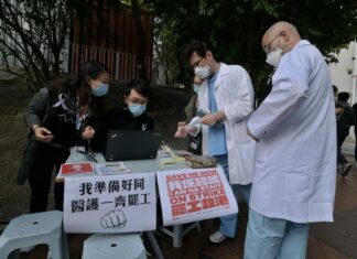 穿白袍登記罷工 醫護排長龍簽到罷工