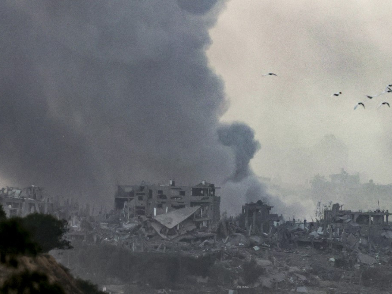 臨時停火協議生效前夕,加沙北部傳出爆炸聲和冒起濃煙,而南部汗尤尼斯亦繼續遭以軍轟炸。(法新社)