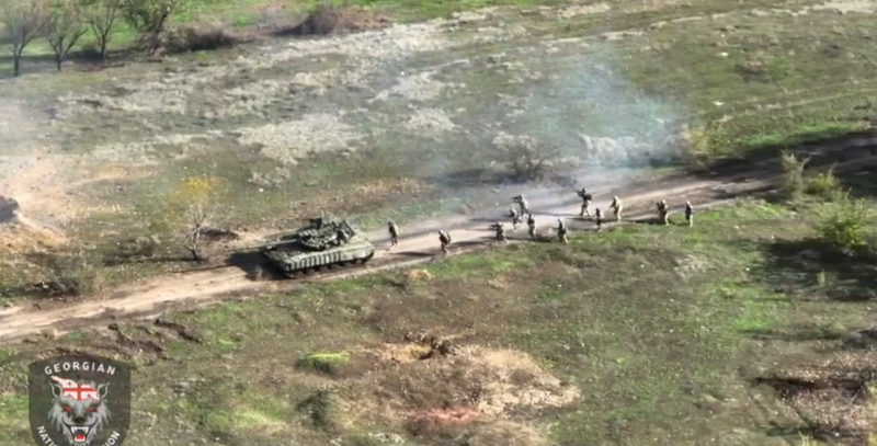 12名士兵與戰車向俄軍陣地步步進逼。(圖擷取自推特)
