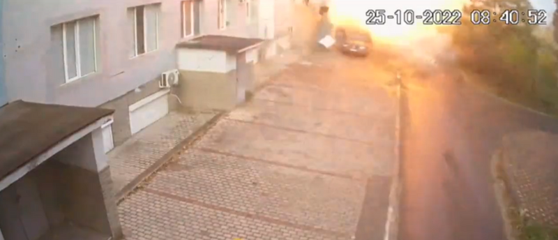 推特帳號「@WarNewsPL1」PO出一段影片,影片中建築物旁邊停著一輛白色的汽車,接著一輛黑色的汽車緩緩朝鏡頭前開來,在開到一半時黑車後方傳出大爆炸,建築物的瓦礫四散,黑車後方也冒出濃煙,右後方車門也快掉下來。