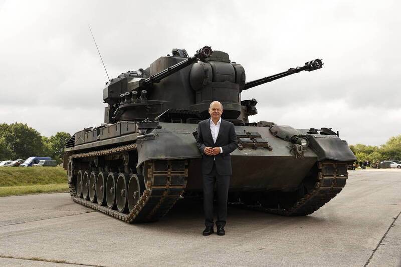 瑞士再一次回絕了德國將獵豹防空戰車彈藥出口至烏克蘭的請求。圖為德國總理蕭茲與獵豹防空戰車的合照。(歐新社)