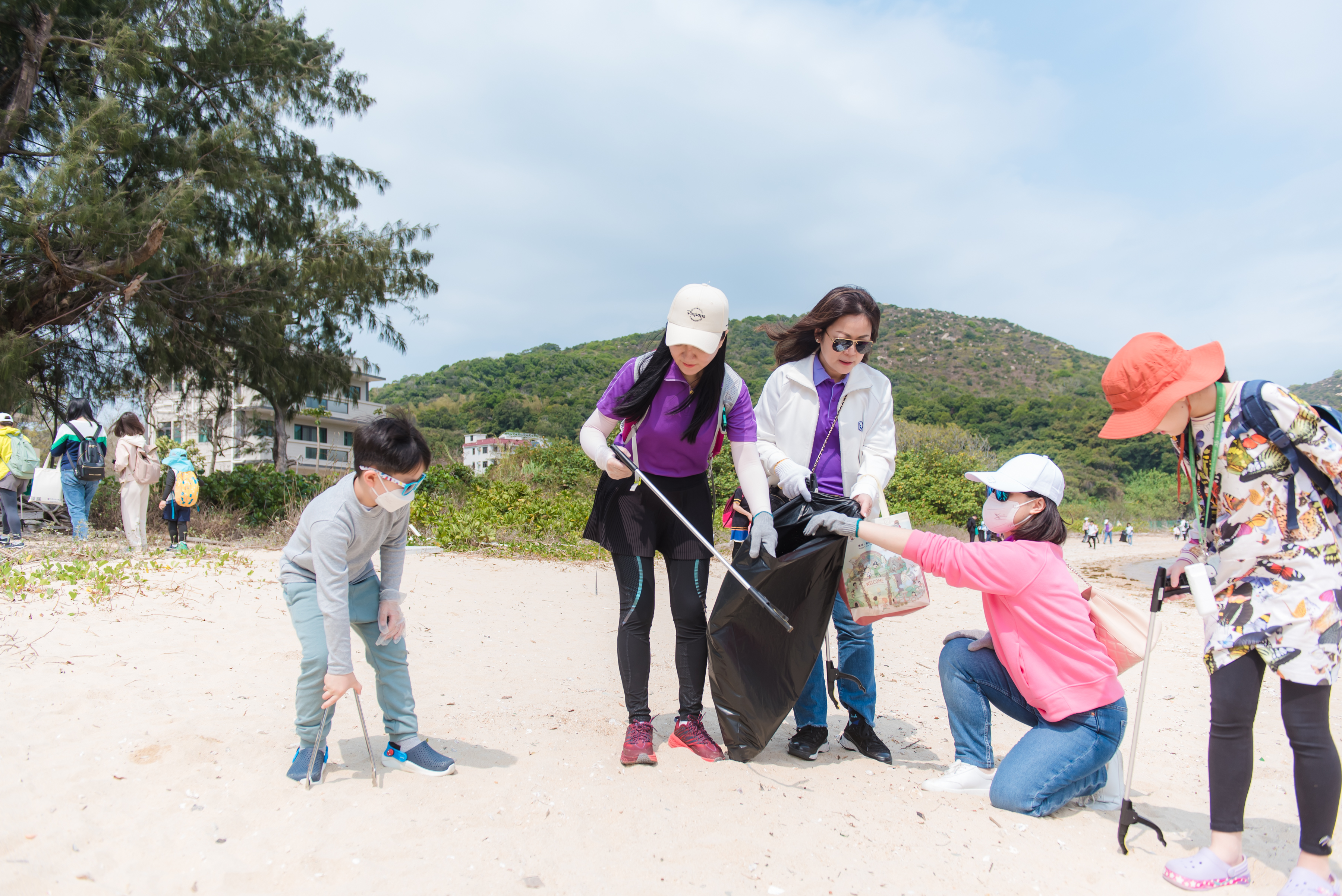 第二站來到南丫島索罟灣清潔沙灘,以實際行動和理論結合,認知環境保護。嘉賓及小朋友2人一組,相互配合,一個拿袋子,一個用鑷子,沿路清理路徑兩旁的廢棄塑料,沙灘上的垃圾,當中包括食物鋁箔袋、即棄餐具、即棄膠樽等等,為守護香港碧水藍天綠色生態環境貢獻一份力量。