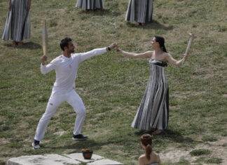 希臘舉行巴黎奧運聖火採集儀式 賽艇冠軍恩圖斯科斯首接